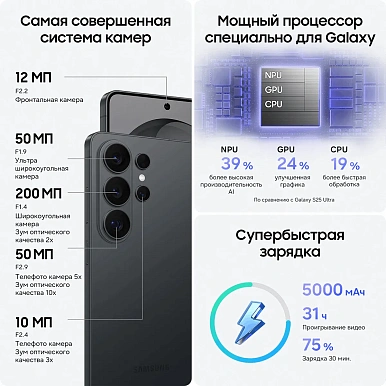 Представляем новейший и самый мощный процессор Galaxy. Он раскрывает весь потенциал Galaxy AI для пользователей, активно работающих в многозадачном режиме, и позволяет повысить резкость изображений в режиме реального времени.